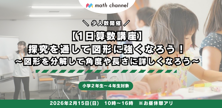私達math channelは、頭と身体を使って「体験」する算数・数学体験教室をメインとして展開し、お子様の算数・数学の学びに対するポジティブな感情を育みます。