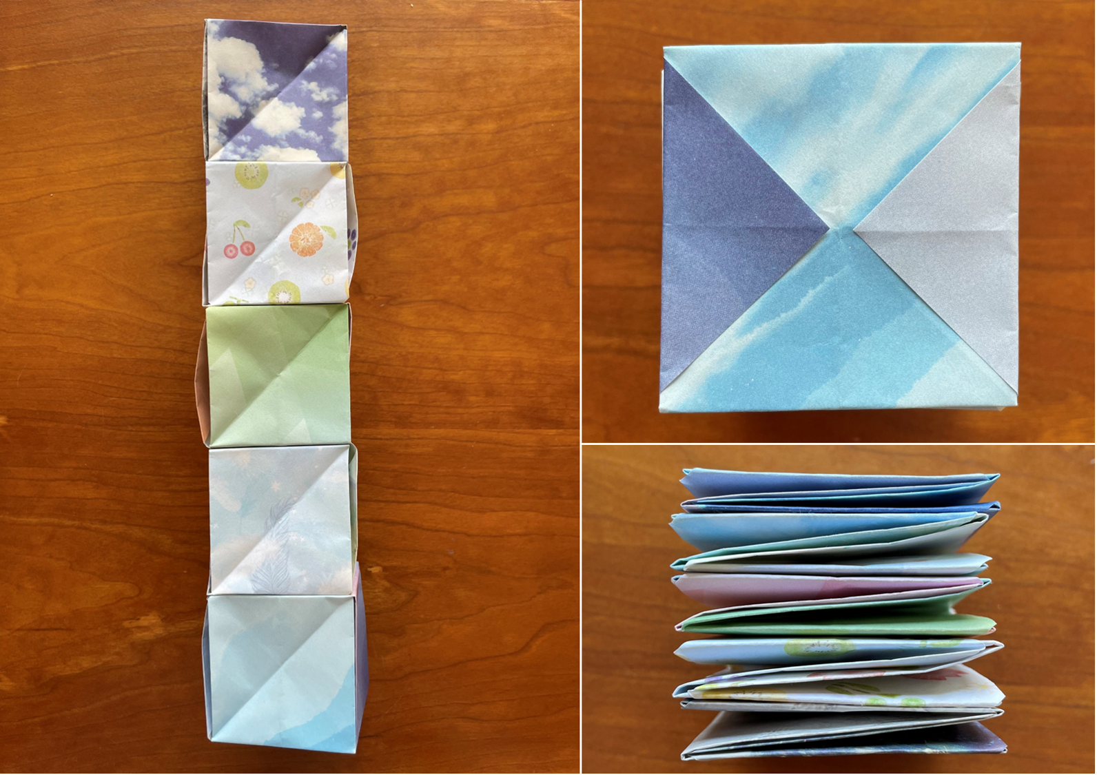 上から見れば平面の正方形。ねじると立方体がポコポコあらわれて長〜い立体に大変身!